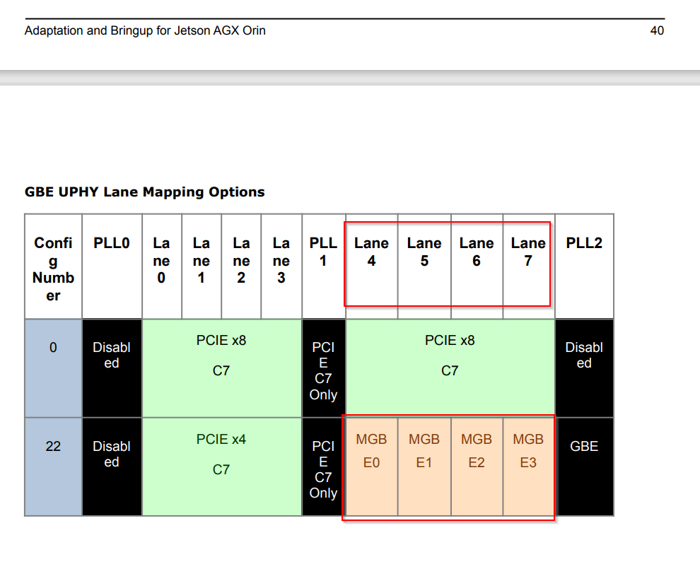 But from the “Adaptation_and_Bringup_for_Jetson_AGX_Orin” The Lane4,5,6,7 support MGBE0,MGBE1,MGBE2,MGBE3