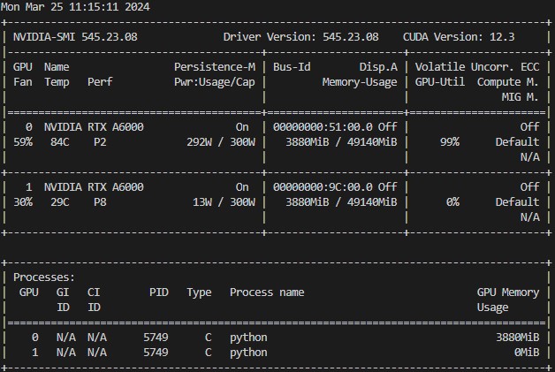 - NVIDIA SMI info: NVIDIA-SMI 545.23.08, Driver Version: 545.23.08, CUDA Version: 12.3