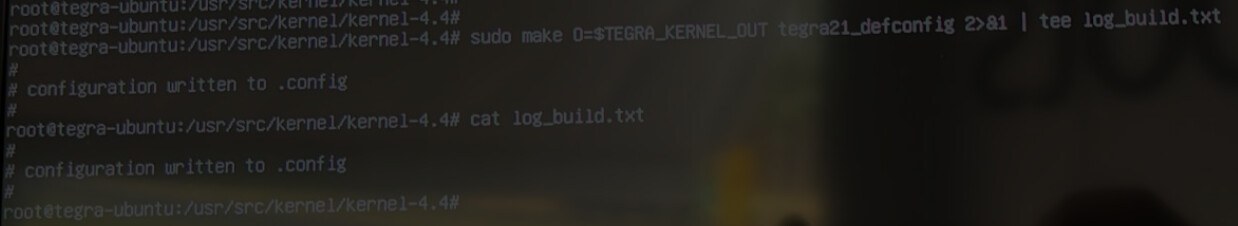 sudo make O=$TEGRA_KERNEL_OUT tegra21_defconfig 2>&1 | tee log_build.txt
