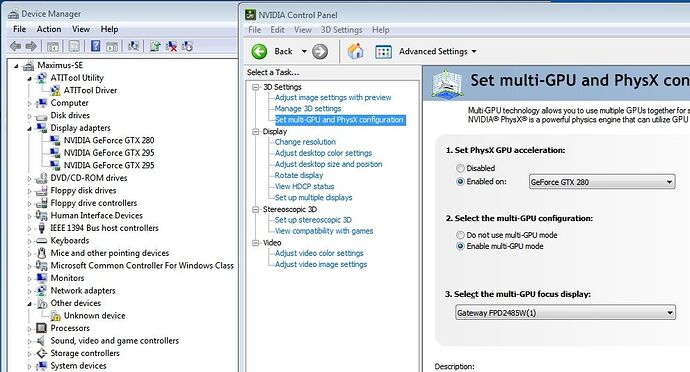 My device manager looks like this, and am running with SLI and PhysX enabled: