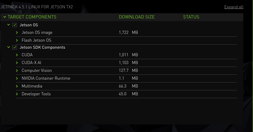 Also, Jetson OS and Jetson SDK can be installed separately. If you want to save time to check logo issue first, just select Jeston OS in below page on sdkm so that sdk will not be installed.