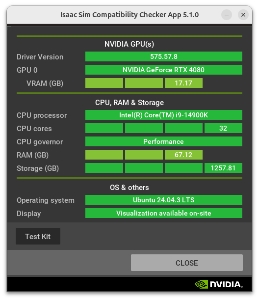 - None found that exactly match this problem, but I noticed VRAM warnings in Isaac Sim system checker.
