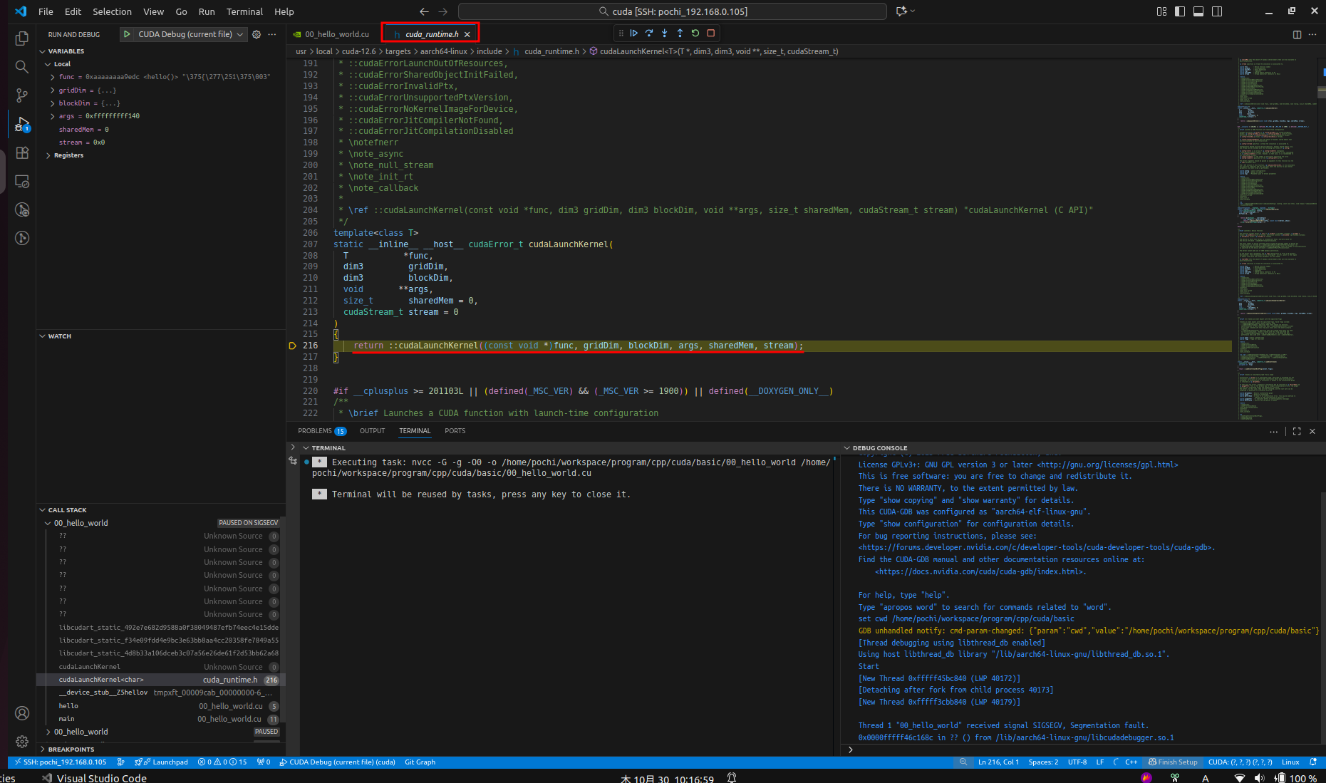 I’m encountering a segmentation fault when debugging even the simplest CUDA program using cuda-gdb on Jetson Orin AGX.