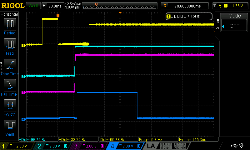 We did take some scope captures of the timing diagram to help debug. Does the timing diagram look correct? For some reason, we are seeing a random high; maybe the module is doing it for the pink channel, which is the MODULE_POWER_ON signal. This blip also coincides with the CARRIER_POWER_ON signal going high, then randomly going back low, and then our embedded controller drives the signal again (that is the blue signal).