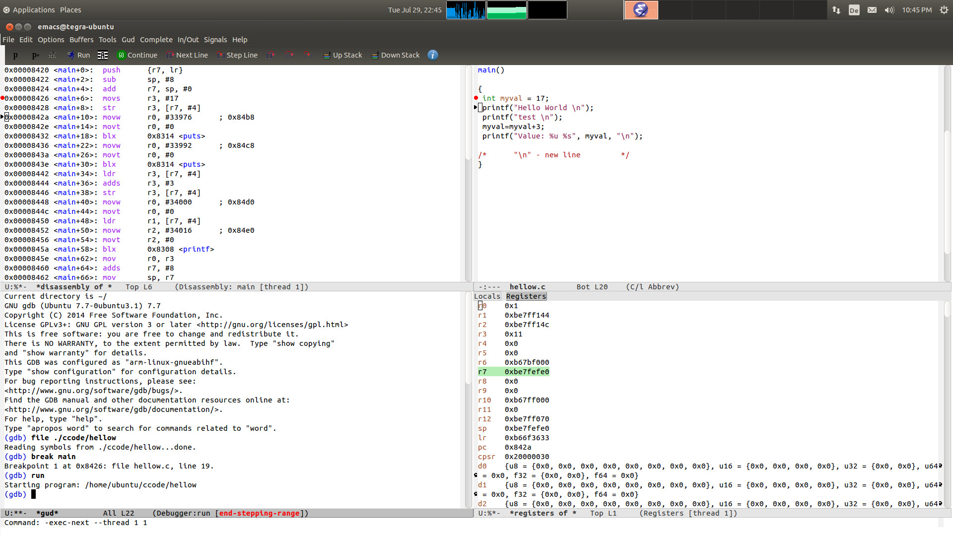 Emacs with the GDB extension works well for the moment