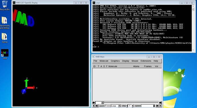 The HOOMD distribution contains a demo call micelle. If you run the micelle demo on the CPU version of HOOMD, it would probably take a week to finish. If you ran it on one half of your GTX295, you would be waiting about 18 hours for it to finish, or about 9 or 10 hours for both halves. Maybe 14 on your GTX280. If you ran Linux. and could use all three of your GPUs, it might take 6 or 7 hours to finish. For the guys who do computational chemistry that is a huge deal. To get that full set of numbers you would need to turn over your PC to running HOOMD exclusively for a couple of weeks 24/7. As a fanboi benchmark it is probably about as interesting as watching paint dry.