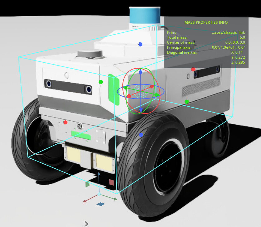 As I have been setting up my vehicle I have been comparing it to Nvidia’s Carter robot configuration. As far as I can tell they are setup very similar except I am using my own diff driver controller to calculate the desired wheel velocities. Both drive wheels are configured the same and only use a Damping gain of 1000000.0 (same as the Carter robot). I don’t really understand why you would only specify Damping and have tried increasing/decreasing the value but get the same behavior. I have also tried to set the DriveStiffness but the wheels do not move if this value is anything but 0.0.