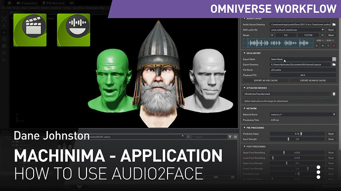 These 2 USD animation clips can be generated in anyway you’d like. For example you could animate the body in Maya and export body animation clip as USD. And for the face animation we use Audio2Face.