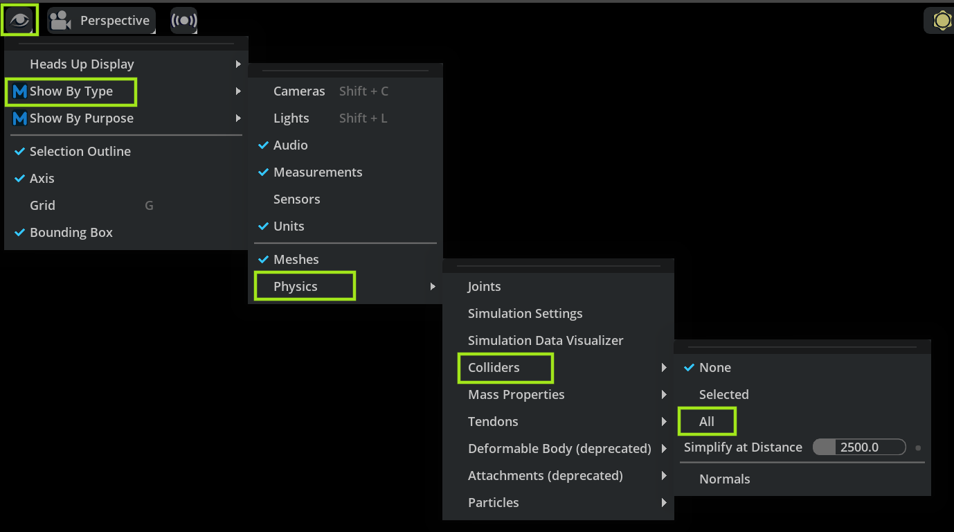 the built in franka already has its collisions tuned, so that’s another reason why i think it may be a good starting point to investigate. you can enable all the colliders on your robot arm via the viewport config: