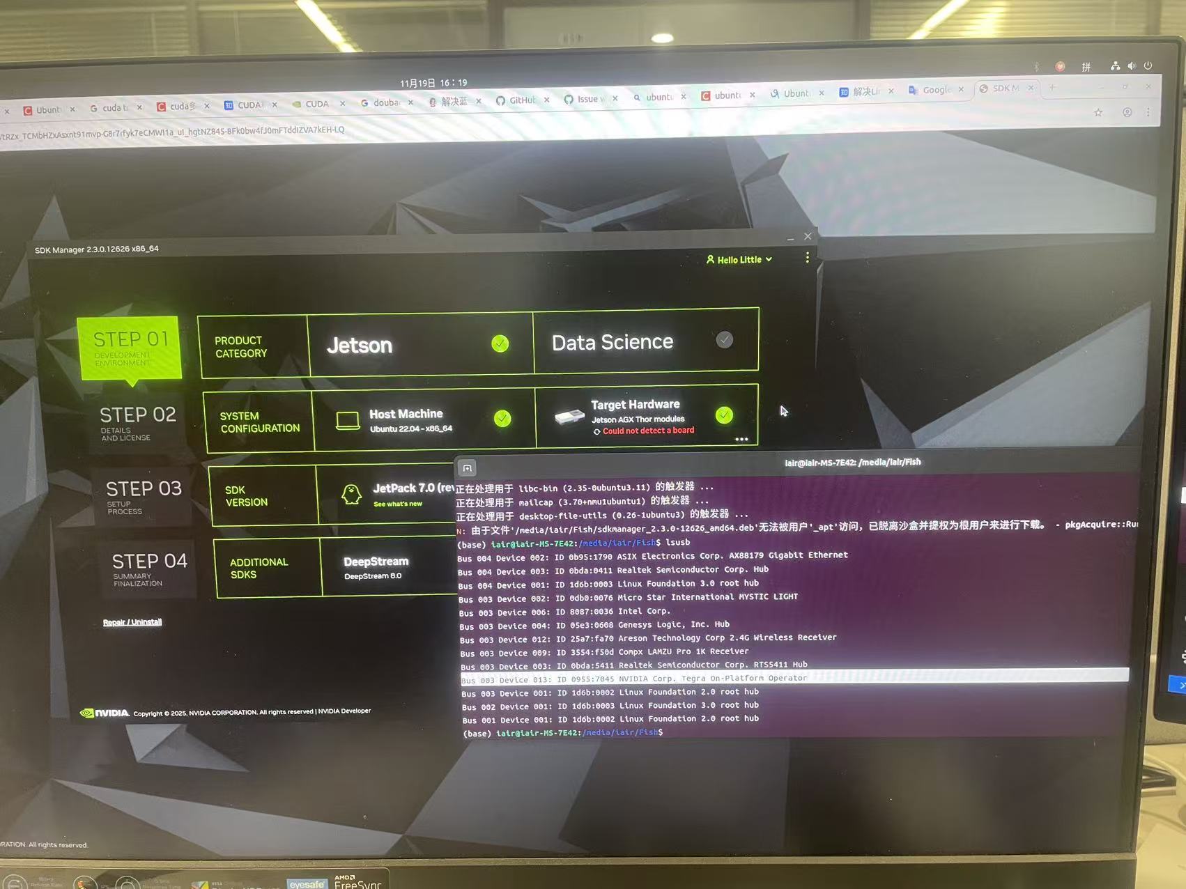 I am attempting to use the SDK manager to complete the flashing process, but I am currently facing an issue where the board is not being detected. I have followed the manual instructions to enter recovery mode, but it has not been effective.