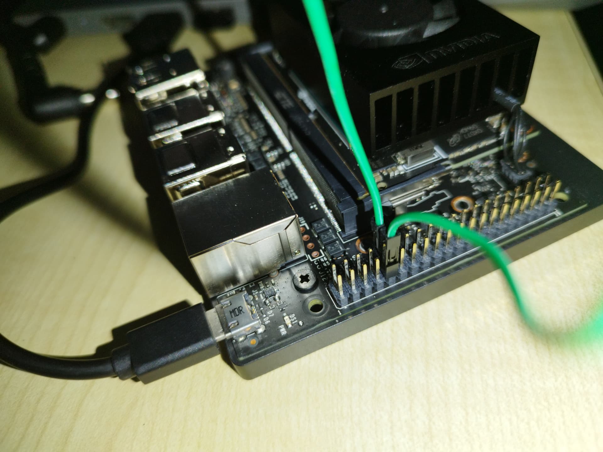 what i did is connecting jumper wire from 9 to 10, and connect hdmi to a monitor and also micro usb to my ubuntu. Then i connect the power cable to J16. My monitor still shows the same thing as before, no logo or anything, just blackscreen, power light is on, but fan is not moving and i use the lsusb command on my ubuntu there is no nx detected