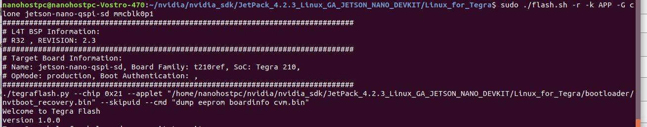 nanohostpc@nanohostpc-Vostro-470:~/nvidia/nvidia_sdk/JetPack_4.2.3_Linux_GA_JETSON_NANO_DEVKIT/Linux_for_Tegra$ sudo ./flash.sh -r -k APP -G clone jetson-nano-qspi-sd mmcblk0p1