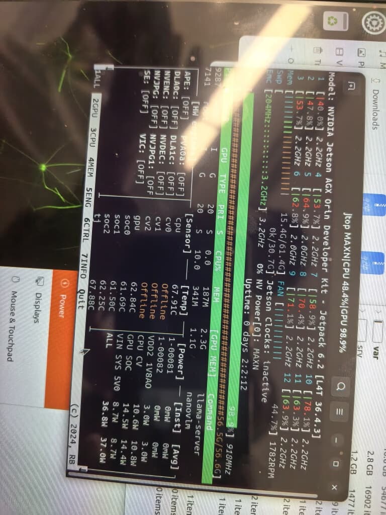 The unexpected power-offs of the Jetson AGX Orin 64GB Devkit units during testing suggest that there might be a thermal or power-related issue. The kernel log before the power loss indicates a thermal event, which could be related to high resource usage leading to overcurrent or temperature problems that trigger hardware protection.