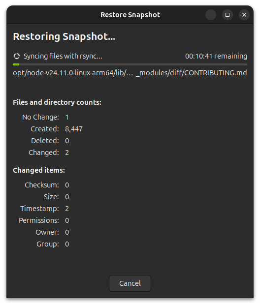 With your USB prepared, open up Timeshift, and restore a snapshot of your choosing to the USB: