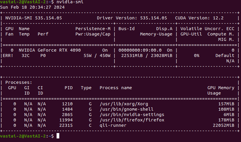 Hi there, I have a MSI 4090 running on Ubuntu 20.04 that I am trying to set up for AI work. I have Nvidia driver 535 installed (non-open version).